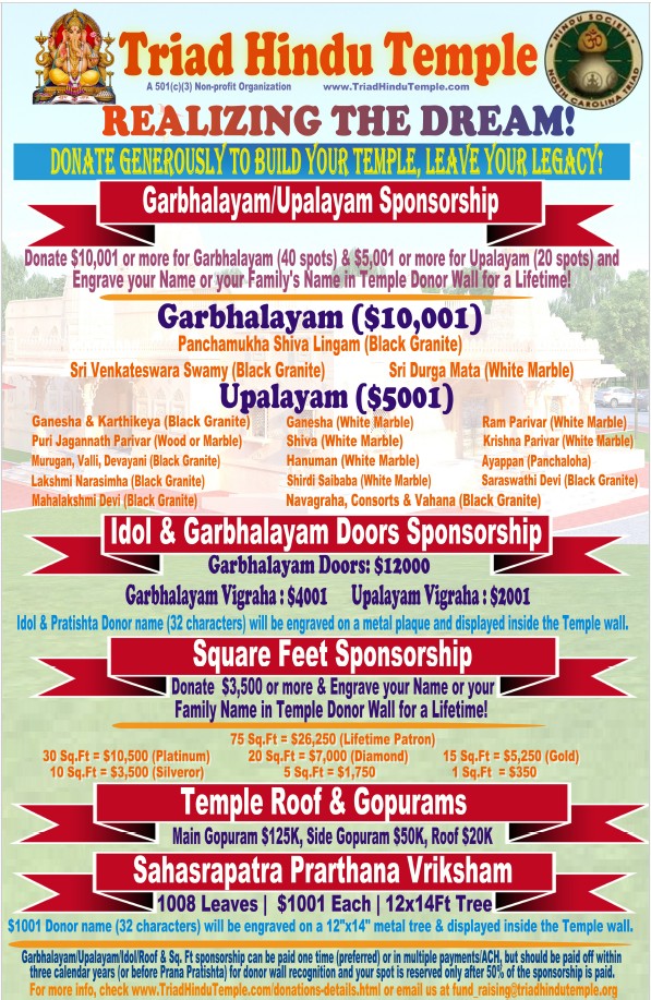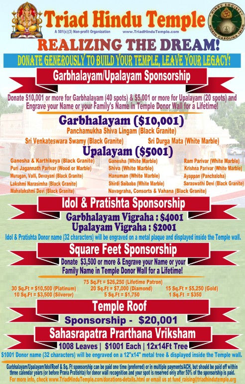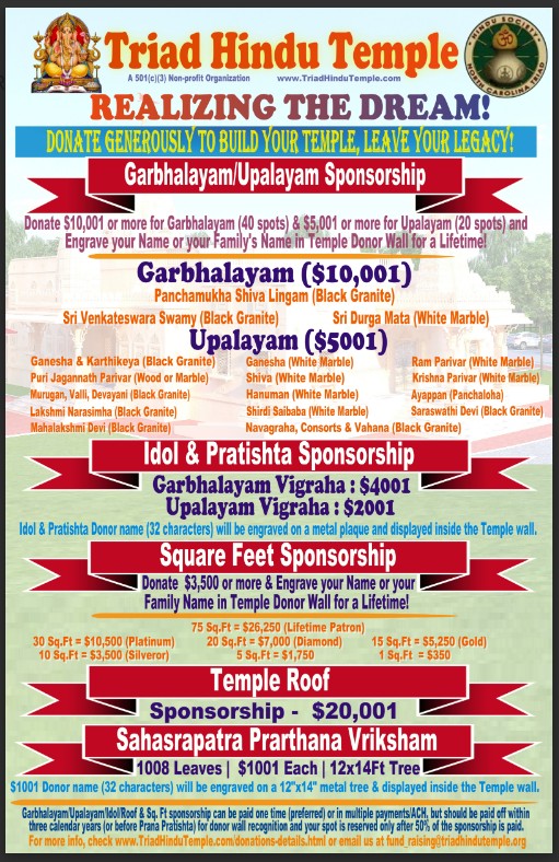 Please reach out to fund_raising@triadhindutemple.org for any questions on sponsorship and donations.